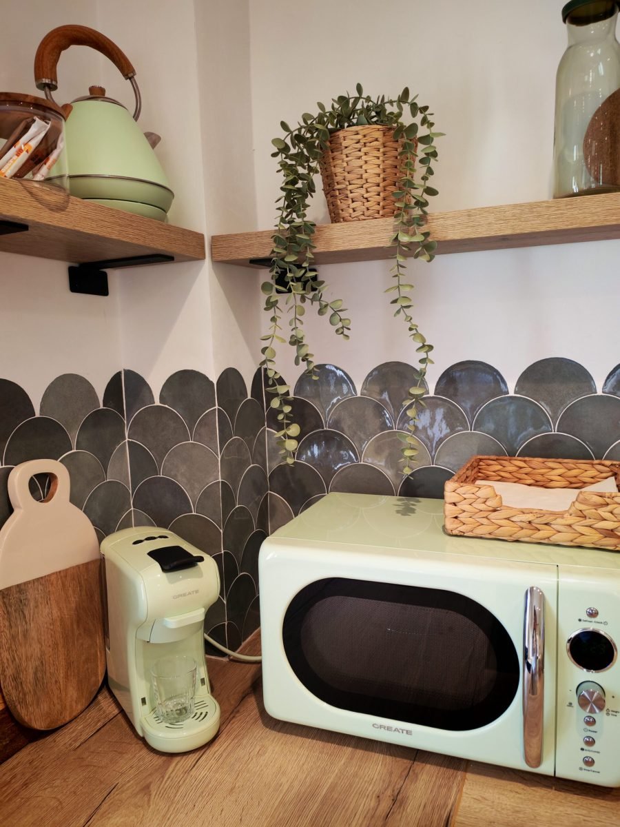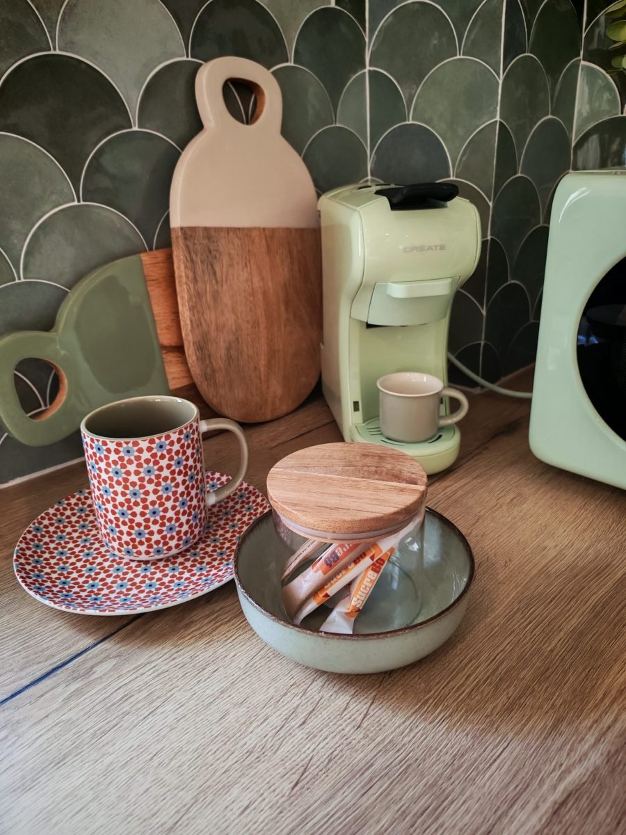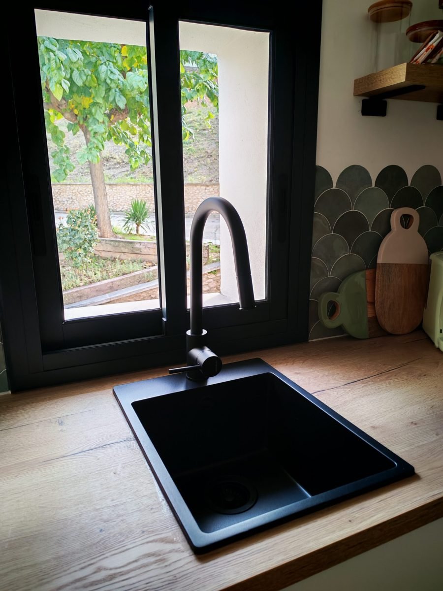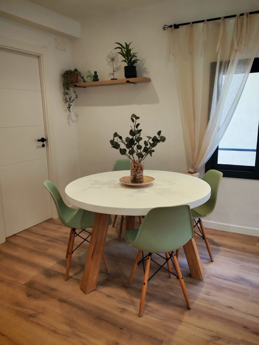 El menjador disposa d’una taula per a 6 persones, sofà i televisió plana. És un espai obert on també trobareu una cuina completa amb forn, placa d’inducció, microones, nevera, cafetera i escalfador d’aigua, a més de tots els estris necessaris per sentir-te com a casa. En una zona vinícola com la Conca de Barberà, no poden faltar copes de vi i cava.