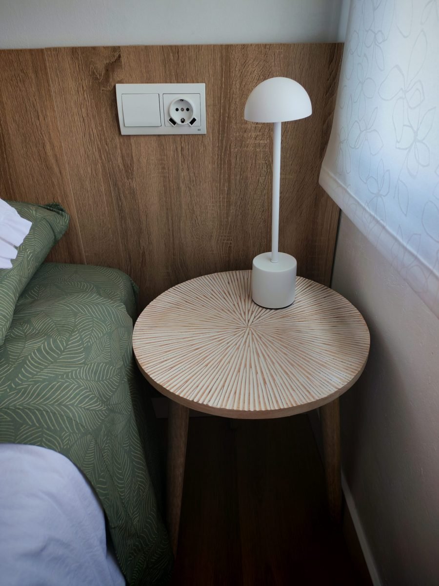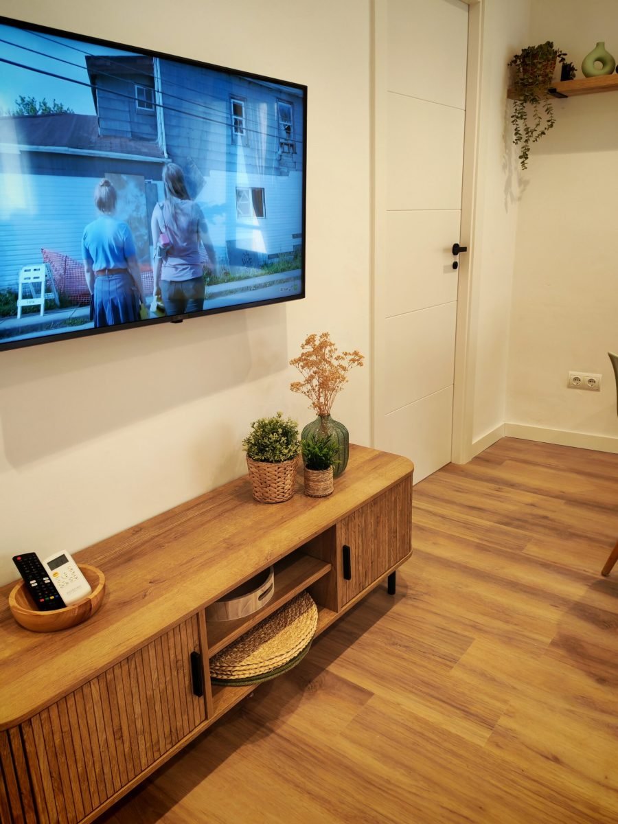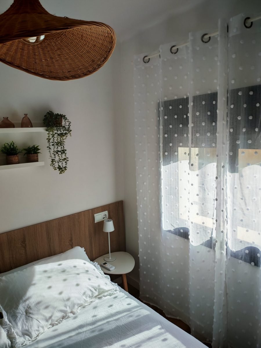 Una de les habitacions compta amb un llit de matrimoni de 150cm i la segona habitació compta amb dos llits individuals de 90cm. El bany disposa de dutxa a peu pla i terra antilliscant per millorar la seguretat.