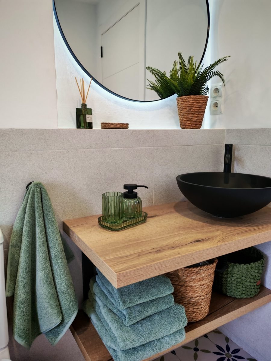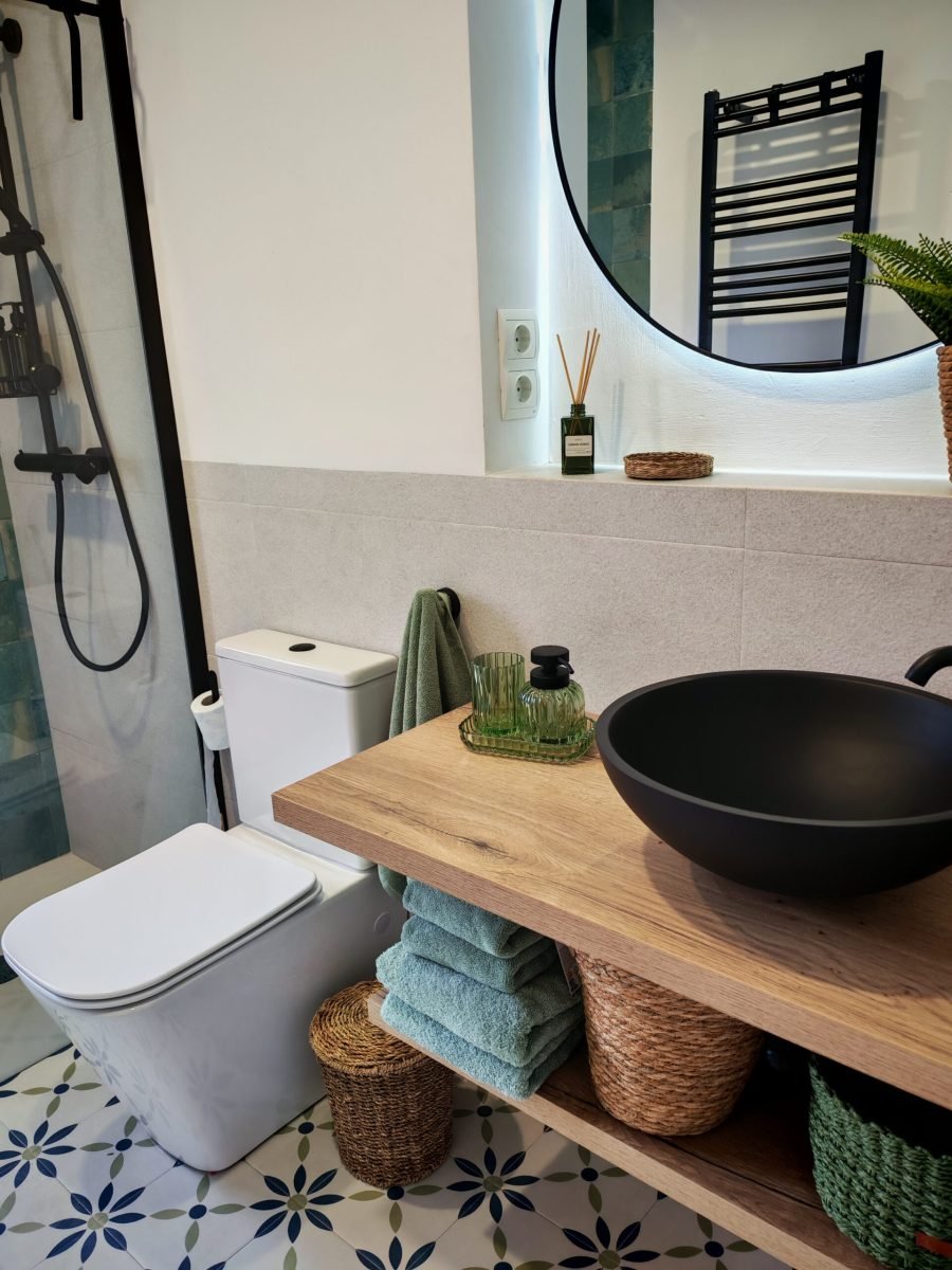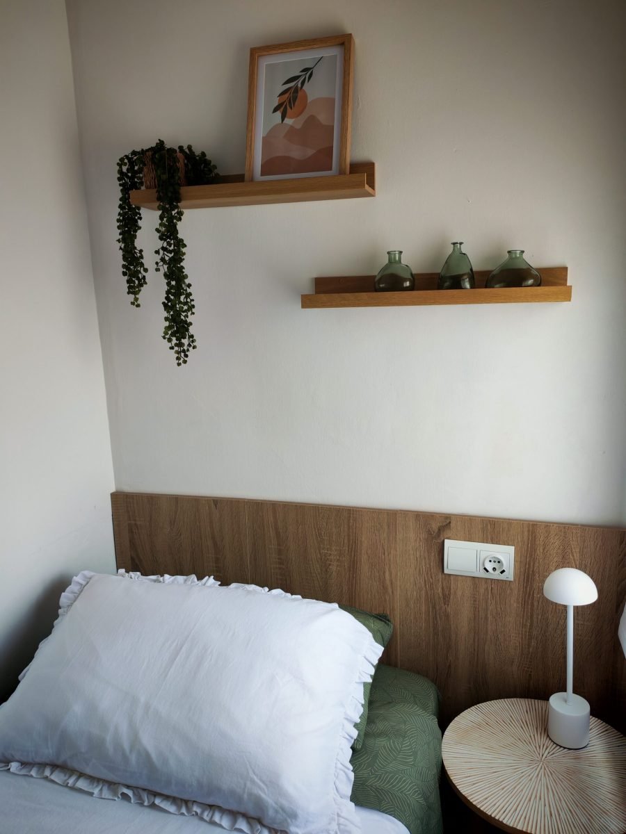 Una de les habitacions compta amb un llit de matrimoni de 150cm i la segona habitació compta amb dos llits individuals de 90cm. El bany disposa de dutxa a peu pla i terra antilliscant per millorar la seguretat.